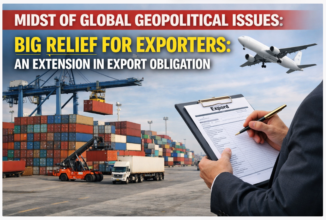 To provide relief to exporters facing disruptions in global supply chains and logistics due to ongoing global geopolitical issues, DGFT has issued Public Notice No. 51/2025-26 dated 06.03.2026, granting a one-time automatic extension in the Export Obligation (EO) period for certain Advance Authorisations and EPCG Authorisations.